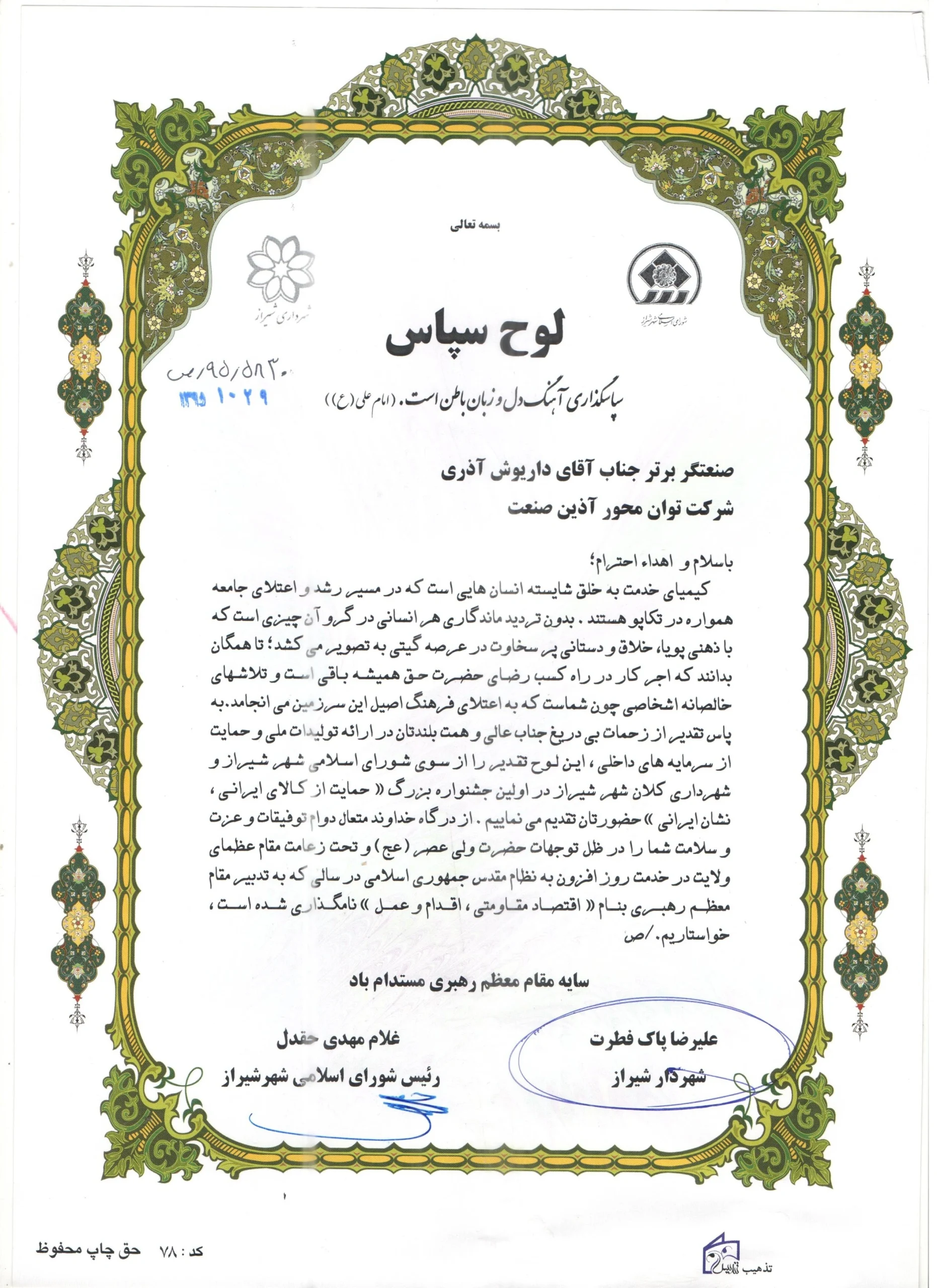 Our honorsشرکت توانمحور با تمرکز بر کیفیت، استفاده از مواد اولیه استاندارد و کنترل دقیق فرآیند تولید، تلاش میکند محصولاتی قابلاعتماد و مطابق با استانداردهای صنعتی ارائه دهد. هر محصول پیش از عرضه، تحت نظارت فنی و آزمونهای کیفی قرار میگیرد تا عملکرد پایدار و مطمئن آن برای مشتریان تضمین شود.