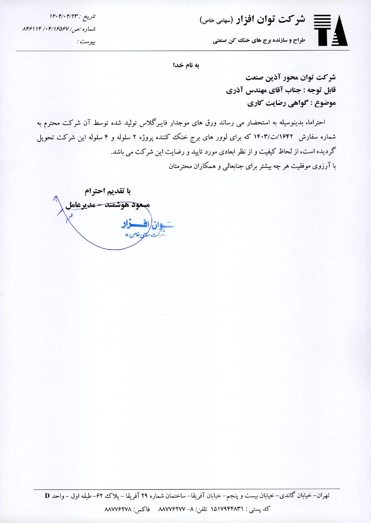 Approvalsشركت توان محور آذين صنعت ، شركتی است توليدی ، صنعتي كه در زمينه توليد درايو شفت فايبركربن. فعاليت مي كند . مديريت شركت متعهد است « نظام مديريت كيفيت » مبتنی بر استاندارد را به منظور اهميت.